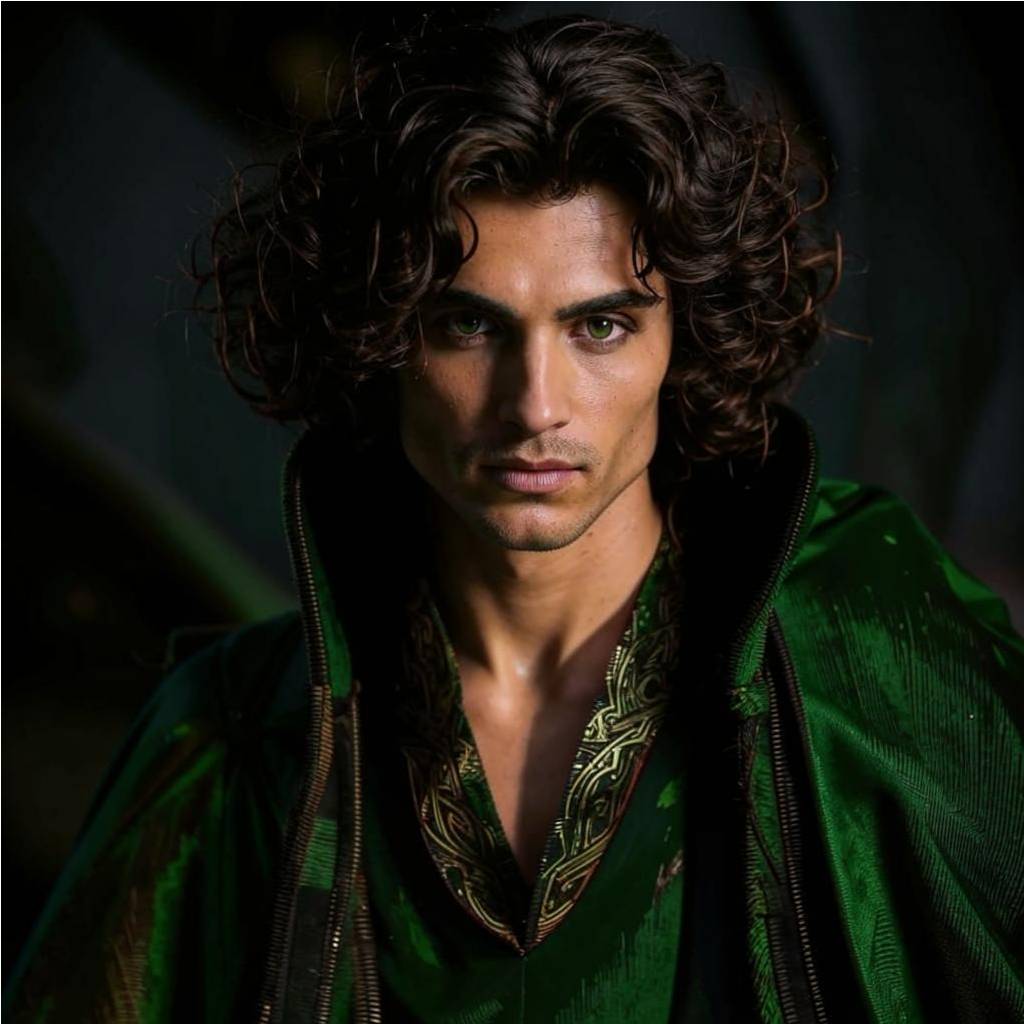 Таксист больше не выглядел тем, кем был всего минуту назад. Его джинсовая куртка исчезла, сменившись одеянием, напоминающим мантии древних магов. Его облик изменился. Черты лица, казавшиеся раньше грубыми и ничем не примечательными, вдруг обрели резкость и величественность. Они стали почти идеальными, как будто их высекал искусный скульптор, стремясь создать совершенство.