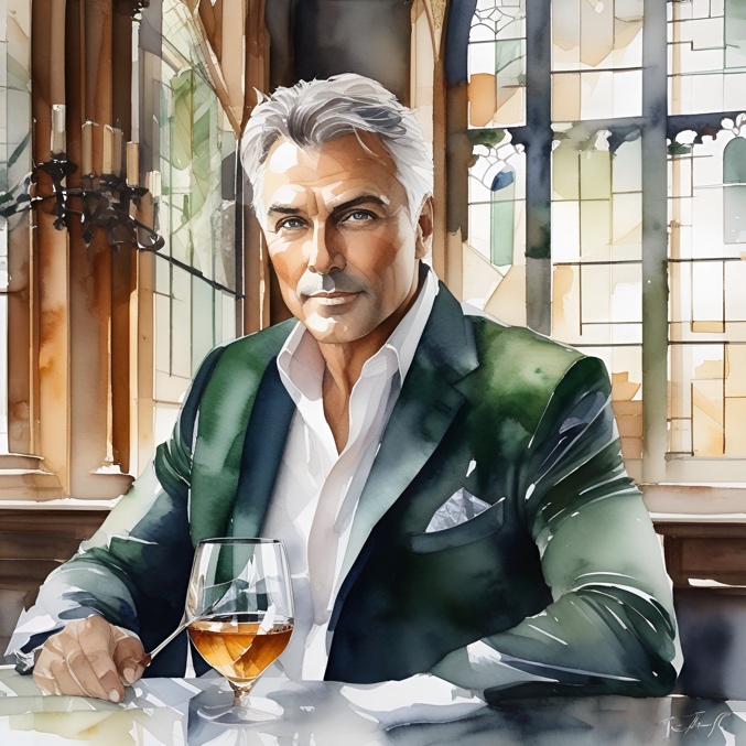 Мы взяли по бокалу, и я всмотрелась в мужчину: почти полностью седые волосы, на вид ему лет пятьдесят, очень живые серо-зеленые глаза. В этих глазах была какая-то магия: хотелось перестать смотреть в них, но в то же время невозможно себя заставить отвести взгляд.