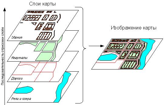 Наконец, я хочу представить картографию, которую я назвал «послойной». Она позволяет отдельно рассматривать карту по тем слоям, из которых она составлена. Таким образом мы получаем картографию, которая раскрывается не только в горизонтальном направлении, но также и вертикально. Вот пример такого прочтения карты: «Электронная карта состоит из упорядоченной совокупности графических слоёв карты, которые последовательно отображаются на экране компьютера. В случае необходимости некоторые слои карты могут быть временно отключены, чтобы не мешать просмотру остальных».19