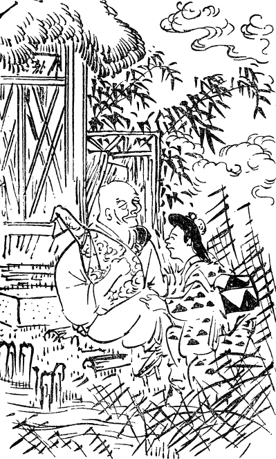 Прошли годы. Как-то вечером бива-хоси (жрец-певец) с трудом взбирался на перевал, ведущий в Этиго. Продвигался он медленно, так как был человеком незрячим. Поклажа его была легкой, и предметов первой необходимости он нес немого. Как гласит древняя мудрость, «слепой человек не различает дня и ночи». Ночь для него никогда не кончается. Этот бива-хоси пришел в монастырь Дзидзо, расположенный сразу за вершиной перевала в начале его спуска. Чутье ему подсказывало, что вот-вот должна была наступить ночь. По крайней мере, ему надо было немножко отдохнуть. Он остановился на привал и стал периодически трогать струны своей бива (лютни), аккомпанируя себе при чтении отрывков из Хэйкэ-моногатари, рассказывающих о битвах и любви героев, помять о которых еще хранилась в народе. Потом до его ноздрей долетел ветерок с запахом свежей крови, принесший признак призрачного видения. Но незрячие люди отличаются храбростью. Видения мало пугали этого монаха, его больше заботила необходимость выдерживания своего пути. Рядом послышался нежный женский голос: «Приближается ночь, и тебе нужна чья-то помощь. Услышав прекрасные звуки струн твоей бива, я пришла предложить мой кров на эту ночь». Однако монах в душе этого мужчины воспротивился такому предложению женщины. «Нет, милостивая сударыня. Я монах и должен поискать приличествующий духовному лицу дом. Если рядом не найдется деревни, тогда я должен провести ночь в этом Дзидзодо. Но говорят, что деревня находится совсем рядом у подножия перевала». Голос женщины снова зазвучал не сразу. Через какое-то время она заговорила более жестким тоном: «Я желаю тебе добра. Твоя музыка утешила мои чувства. Не останавливайся в этой деревне. Иди дальше. Не буду скрываться. Я – дочь охотника Ёсаку по имени Ори. Жители этой деревни отказались от пожертвований на мой алтарь. Этой ночью на них должен обрушиться грязевой поток. Ищи приют где-нибудь еще».