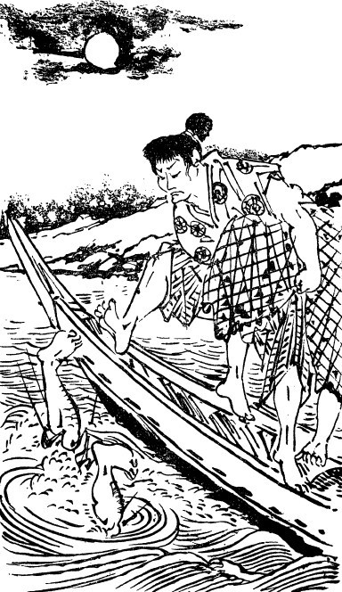 Всего лишь месяц спустя представитель дома Сатакэ снова прошел испытание судьбой на воде. Ёкояма Таро постоянно приглашал Ацумицу на рыбалку, и этот видный аристократ, как добропорядочный буддист, упорно отвечал отказом на том основании, что не может отнимать у животных жизнь. В соответствии с самурайскими нравственными воззрениями мужчина не может быть животным. На этот раз Таро подыскал два надежных аргумента: «Идза! Рыбы к животным не относятся. Они относятся к растениям, как хорошо известно авторам соответствующей сутры (священного писания). Кроме того, – продолжил он торопливо, – человеку надо жить, а также для обретения силы к рису следует добавлять вкус не только стеблей и кореньев. Ловля рыбы не предусматривает ее обязательного употребления в пищу. Как еще рыбы достигнут состояния нирваны или получат шанс на более благоприятное рождение в следующей жизни? Прояви же милосердие к ним и остальным членам своего семейства! Рыбу, пойманную Ацумицу-доно, можно будет потом всю отпустить. В этом и будет состоять грех и благо Таро для всей нашей вылазки на водоем. Нам сообщили, что в настоящее время воды реки Катасэгавы кишат форелью (аю), а в нижнем ее течении можно просто забросить сеть и наловить молодой кефали (ина). Решись хотя бы на один день такого развлечения». Теперь Ацумицу больше не верил в Таро как в богослова. Ни рыбе, как животному, ни домашнему животному не дано достичь абсолютного просветления как такового. При этом он знал, что если уж существовало какое-либо занятие, предусматривающее полное безделье и требующее более лежания на боку, чем живого движения, тогда в этом деле равных Таро было еще поискать. Кроме того, в его время он считался той еще ленивой рыбой. Суть человека определялась его наклонностями. Таро получил указание к следующему утру подготовить все необходимое для рыбной ловли.