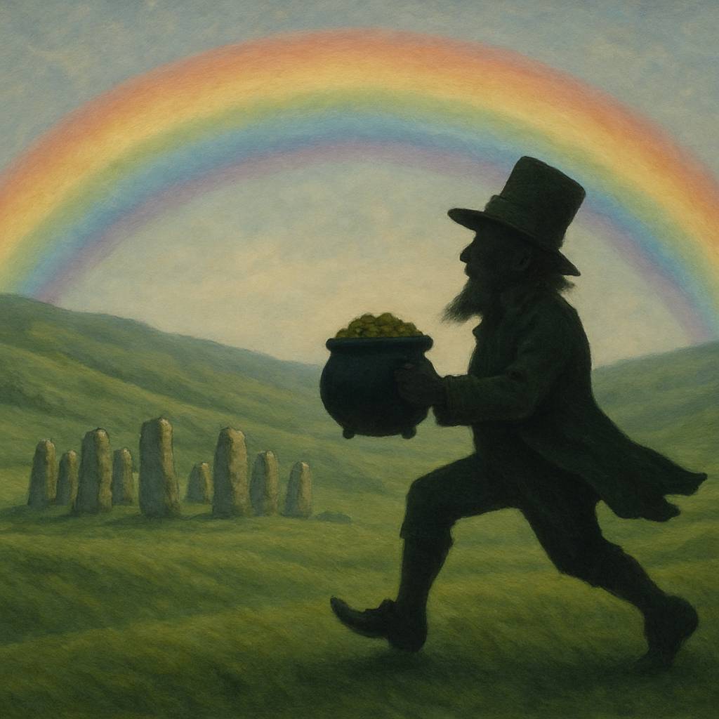 Радуга в ирландской традиции – это не просто природное явление, а мост между миром людей и потусторонним. В кельтской мифологии, господствовавшей на острове до прихода христианства, радуга ассоциировалась с божественными силами и путями духов. Её появление после дождя, частого в Ирландии, воспринималось как знак благословения или удачи. Самая известная легенда связывает радугу с горшком золота, спрятанным лепреконом в месте, где её конец касается земли. Эта вера, вероятно, возникла из наблюдений за природой: после дождя, когда солнце пробивается сквозь тучи, поля оживают, а урожай становится обильнее, что могло ассоциироваться с богатством. Вера в сокровища у конца радуги также отражает кельтское восприятие природы как источника изобилия, где каждый элемент – от реки до неба – несёт скрытый смысл. Хотя найти конец радуги невозможно, эта примета внушала надежду, побуждая людей видеть в природных явлениях обещание благополучия.