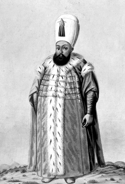 «Султан Ахмед-Хан, Всепресветлейший, сын Великого Бога, Царь всех турок, греков, вавилонян, македонян, сарматов, Повелитель Большого и Малого Египта, Александрии, Индии, а также всех народов на земле Государь и Монарх, Господин и Светлейший сын Магомета, Защитник и Охранитель святого Грота Небесного Бога, Царь всех Царей и Государь всех Государей, Государь и Наследник всех наследников».