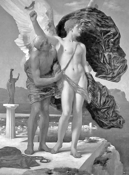 У Дедала был маленький сын Икар, который с любопытством следил за работой отца. Потом он и сам стал помогать ему.