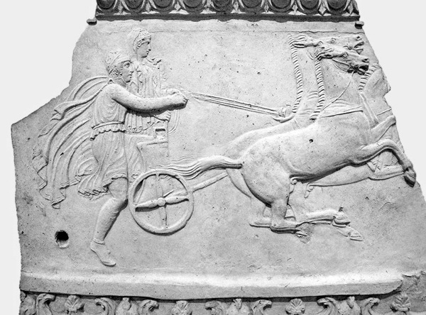 Пелоп, едущий на колеснице с Гипподамией. Изображение на древнегреческой вазе.