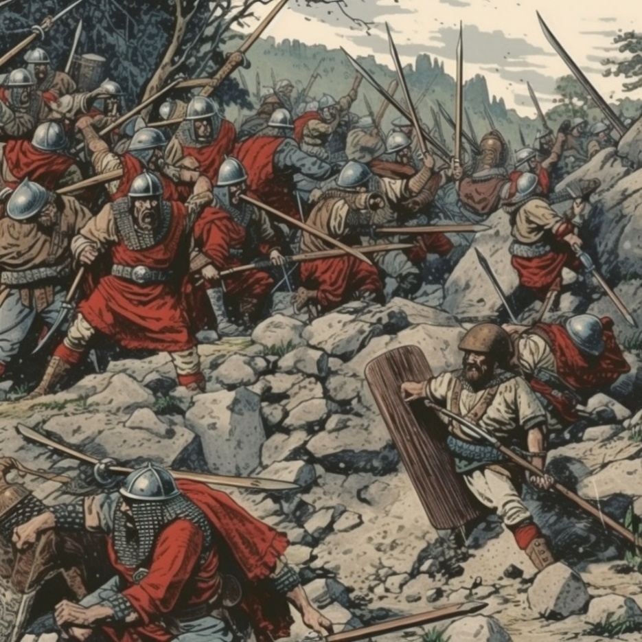 Карл Мартелл умело расположил свои войска на скалистом холме, и его пехота успешно отбивала все атаки арабской конницы