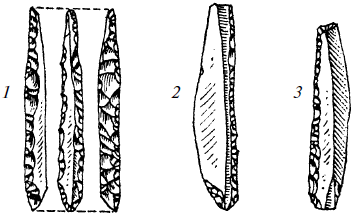 СвидерцыВ горном массиве Чахлэу в Восточных Карпатах на высоте 1327 м в месте, называемом Ла-Скауне, обнаружена свидерская стоянка. Присутствие групп охотников в горах Чахлэу можно объяснить, вероятно, проникновением носителей этой польской культуры; они пришли с Десны и ее притоков и двигались на юг, в направлении Черного моря и степей. Пробная траншея, проделанная в этих местах в 1957 г., извлекла на свет большое количество кремней, нуклеусов, целых и сломанных ножей (некоторые из них дополнительно обработаны ретушью, а часть снабжена так называемым обушком), а также скребков, резцов, зазубренных наконечников для стрел, фрагментов кремневых желваков и т. п. Нуклеусы имеют призматическую форму или принадлежат к типу со скошенной ударной поверхностью. Орудия изготовлялись на месте; на стоянке найдены образцы разной степени завершенности. Можно считать, что эта стоянка позволяет нам расширить область распространения свидерских культур к югу, в места, сильно удаленные от ранее известных центров. Кроме того, из-за значительной высоты места лагерь древних людей на стоянке Чахлэу-Скауне совершенно не похож по типу на уже известные стоянки. Найденный здесь археологический материал характерен для свидерской культуры (рис. 3).