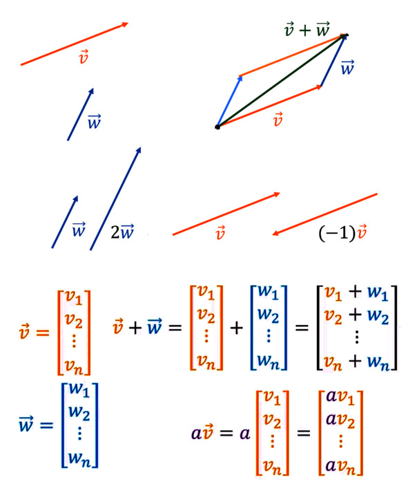 В зависимости от ситуации, вектора можно складывать и умножать на числа, как геометрически, так и в компонентах.