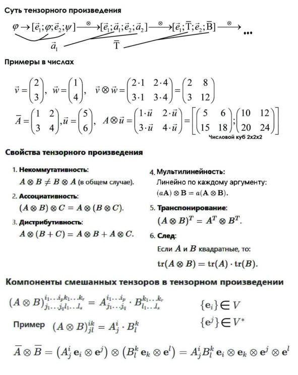 Суть, примеры и свойства тензорного произведения.