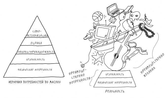 Иерархия потребностей по Абрахаму Маслоу слишком аккуратна. Когда человек удовлетворяет свои базовые потребности, он попадает во вселенную желаний, у которых нет стабильной иерархии.