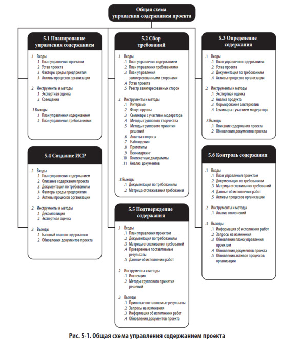 Управление содержанием проекта включает в себя процессы, требуемые для обеспечения того, чтобы проект содержал все и только те работы, которые требуются для успешного выполнения проекта. Управление содержанием проекта непосредственно связано с определением и контролем того, что включено и что не включено в проект.