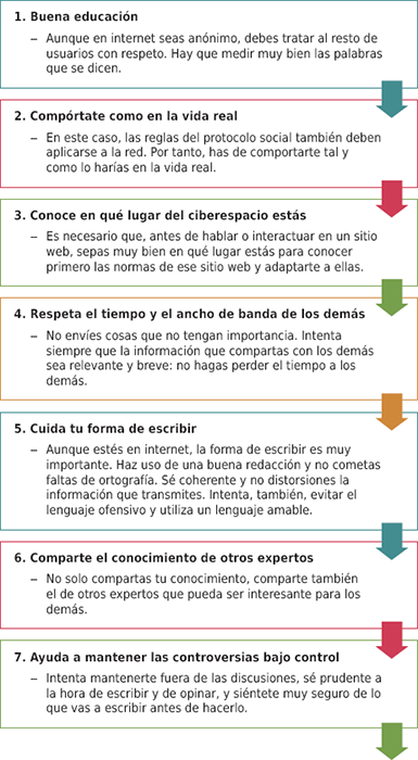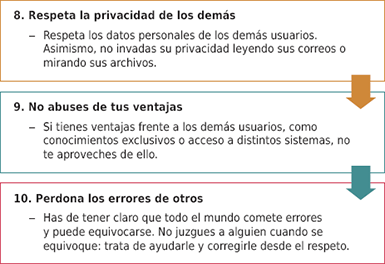 Accede al siguiente enlace en el que se describen más detalladamente las reglas de la Netiqueta y en qué otros ámbitos se aplican: