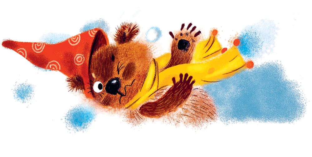 Метко пущенный снежок попал Медвежонку прямо в лоб.