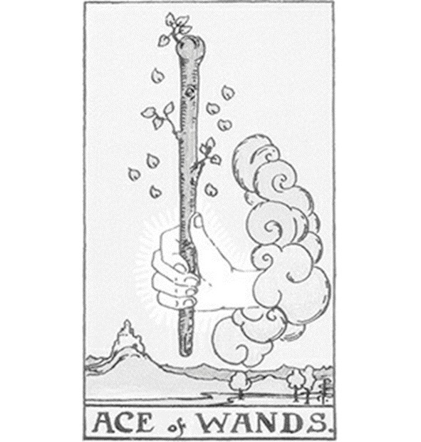 Тузы символизируют начало. Они также представляют сосредоточенную энергию и четкое, единое намерение. В колоде Райдера-Уэйта и некоторых других колодах Туз Жезлов изображает руку, выходящую из облака и держащую палку, из которой растут новые побеги. Послание карты: «Вот Вам возможность; хватайте ее». В некоторых колодах изображен только жезл, часто большой и изысканный, как скипетр правителя или церемониальный инструмент ведьмы.