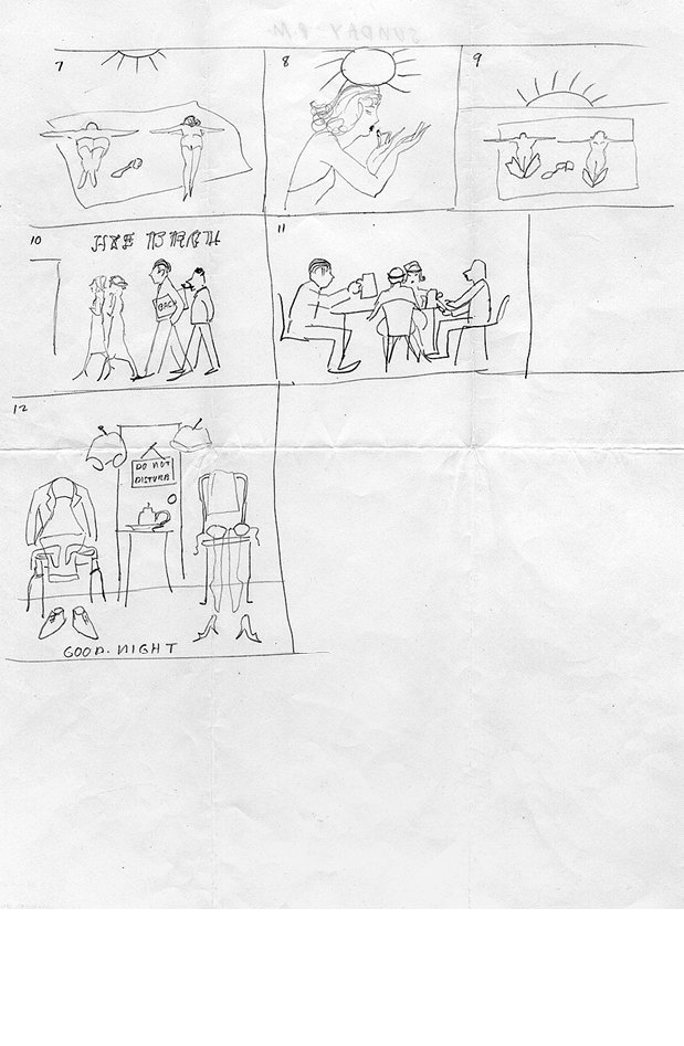 В последнем кадре никого нет, это единственная зарисовка, в которой отсутствуют люди. На ней изображена одежда Меты и Билла, развешанная на стульях, – носки, рубашки, нижнее белье, на двери комнаты, похожей на гостиничный номер, висит табличка Do not disturb, внизу надпись Good Night.