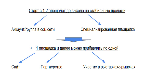 Как я писала выше, стартуем всегда с одной, максимум двух площадок продаж. Я рекомендую взять за основу социальные сети, как универсальный инструмент с широким доступом к целевой аудитории