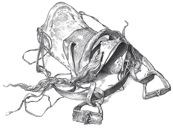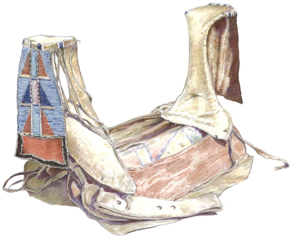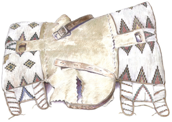 Нижняя половина седла могла быть сделана из более толстой кожи, но обычно кожа всё-таки была мягкой. Верхняя половина, для удобства всадника и красоты, часто делалась из более тонкой, хорошо выделанной бизоньей или оленьей кожи и расшивалась бисером. К такому седлу могли крепить и стремена. Седельное одеяло подкладывалось редко. Преимущественно это был небольшой кусок шкуры с мехом. Из-за малого размера таких сёдел часто издали создавалось впечатление, что воин сидит на голой спине лошади.