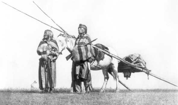 В 1738 году ла Верендри описал ассинибойнов из региона Ред Ривер в Манитобе: «Они заставляют собак даже таскать дрова, чтобы разводить костры. Их лагерь часто располагается в открытой прерии, на большом расстоянии от лесных массивов… Женщины и собаки несут весь багаж». При этом мы доподлинно знаем, что лошади у ассинибойнов уже имелись. Почему же, если лошади были в лагере, их не использовали вместо собак и женщин?