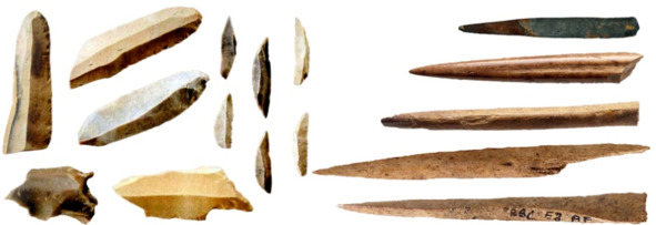 А раз так, то очень быстро появился и более совершенный способ изготовления кремневых орудий – пластинчатая техника, создаваемая путём откалывания пластин от подготовленной сердцевины, а вместе с ней сперва мустьерская, а потом и атерийская культура. Орудия последней отличаются высоким качеством изготовления, большим разнообразием и специализацией по сравнению с мустьерскими. Атерийская была первой археологической культурой, не имевшей аналогов в других местах; в то время как в Европе существовали средний и верхний палеолит, а также мезолит, в Африке проявилась собственная специфическая фаза палеолита, продолжавшаяся в районе Чадского озера вплоть до неолита. Подобная техника изготовления позволяла лучше контролировать размер и остроту конечного орудия и вела к созданию сложных инструментов, таких, как метательные камни и скребки, которые можно было насаживать на древко копья или рукоятку серпа. Да, серпы появились еще у собирателей, задолго до начала земледелия. И, разумеется, такая технология позволяла более эффективно охотиться, что ставило охотника в меньшую зависимость от сил природы. Правда, технологическое развитие древнего человека происходило крайне неравномерно – «рывками». Отдельные достижения материальной культуры проявлялись на короткое время локально, и утрачивались вновь. Вероятно, это связано с конфликтами, разрывом контактов или застыванием в стабильных условиях, когда улучшения не требовались, а новой информации не поступало. Впрочем, и сейчас мы можем наблюдать, как одни страны развиваются как в техническом, так и в социальном плане или в отношении лошадей, а другие остаются на уровне средневековья.