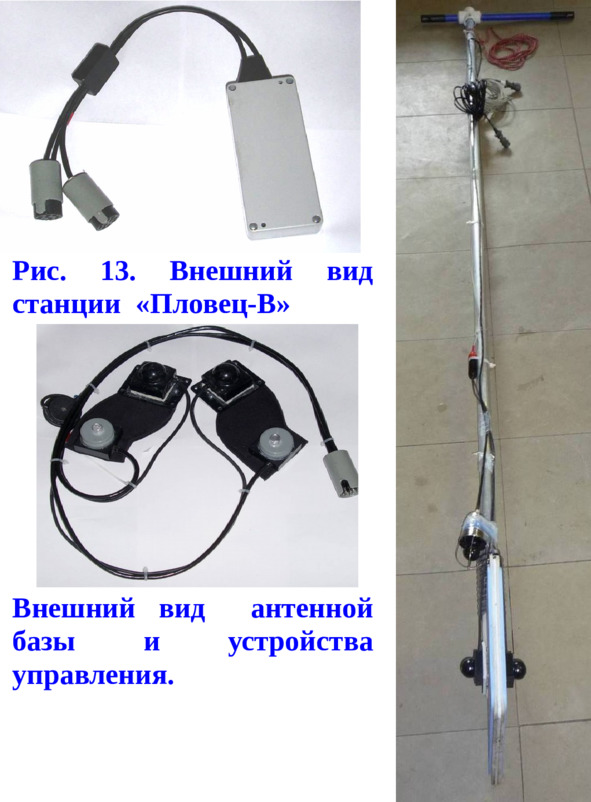Всё это замечательно, скажете Вы, но где взять такую станцию? В продаже их нет. Да, такая станция для водолаза «Пловец-В» и катера «Пловец-К» создана в России по предложению автора книги в 2012 г., в АНО «РТГ» («Реализация технических гипотез» – Санкт-Петрбург), успешно прошла все испытания, (заводские, межведомственные) но серийно пока не выпускается из-за отсутствия заказов. Внешний вид и состав станции представлен на рис. 13, а её размещение на водолазе для водолазного снаряжения СЛВИ-71 показано на рис. 14.