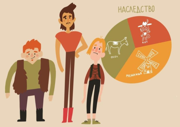 Кому из братьев принадлежит мельница? Кому осел? А кому кот? (Можно перебирая варианты обсудить, почему тот или иной брат будет владеть частью наследства).