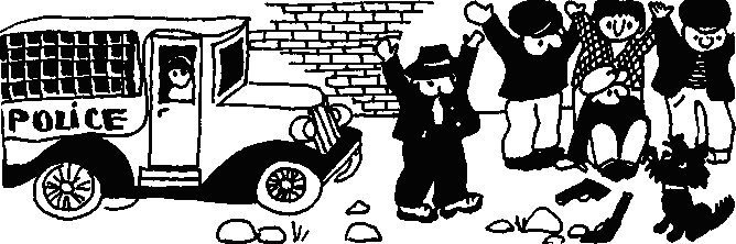 Просунув руки за решетку, воры несколько раз выстрелили наугад, но попали в шкафы. Шкафы раскрылись, и все содержимое вывалилось. А ребятам вся эта пальба только понравилась. Берта и Мели потребовали, чтобы им тоже дали „гранаты“. Обе девочки, Габи, Фернан, Зидор и Жуан по очереди бросали „гранаты“ за решетку.