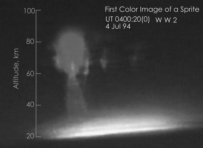 Каждый вид этих небесных созданий занимает на небе определенное место: гномы находятся внизу, чуть выше – красно-фиолетовые спрайты, а над ними – парящие в вышине эльфы – самые недолговечные среди этих экзотических объектов.