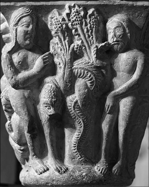 Грехопадение. Капитель каталонского монастыря. Конец XII в.