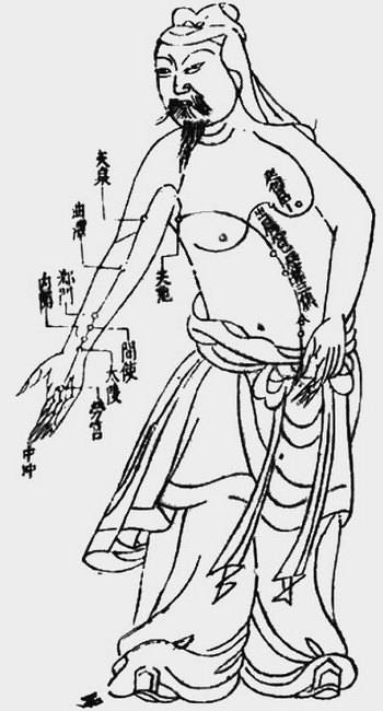 Китайская средневековая гравюра с указанием точек акупунктуры