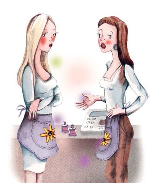 Я только увидела лицо над сиреневым фартуком и сразу поняла – это она. Очень худая, с голубыми глазами, прозрачными, как ледышки. С длинными волосами цвета ЛЕДЯНОЙ БЛОНД, причёсанными волосок к волоску. Розовые длинные ногти блестели… Я почувствовала, как по спине пробежали мурашки. Она была очень холодной и очень ВЗРОСЛОЙ. Что мы ей сможем сказать?