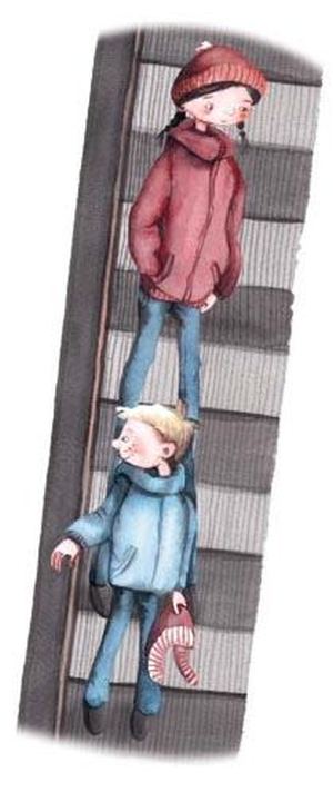 Может, потому что диван стоял рядом с окном? Я отодвинула занавеску. Весь двор был завален снегом. Ветки деревьев, машины, скамейка и горка. Хлопья снега летели вниз – как по косой линейке в тетради. Маргарита Романовна точно поставила бы этому снегопаду «пять» – за правильный наклон! А вдруг Мишка ещё дрыхнет? Надо скорей рассказать…
