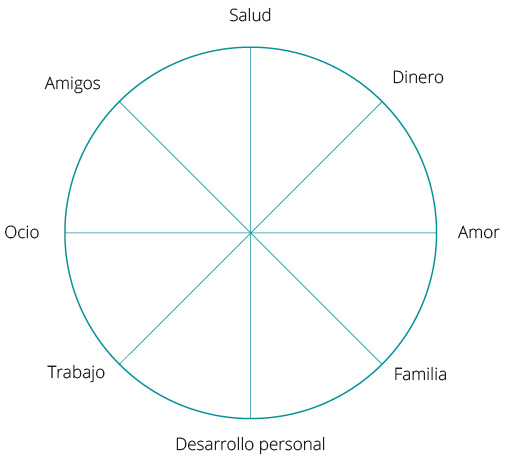 La rueda de la vida (figura 1) nos proporciona una visión amplia de las parcelas de nuestra vida y una perspectiva un tanto alejada que nos permite separarnos un poco de lo que está ocurriendo, para tomar distancia y verlo de una manera más objetiva e imparcial.