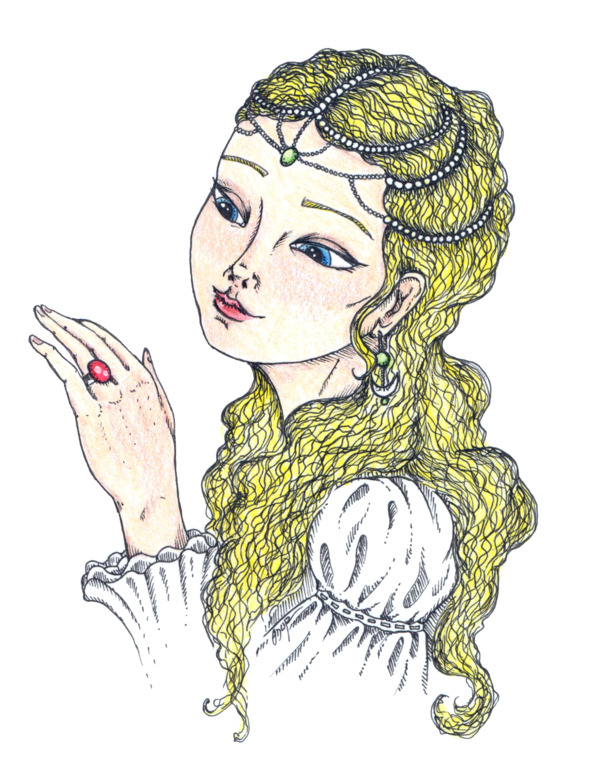 Принцессу одели в шикарное платье, драгоценностям, которые были на ней, позавидовали бы самые богатые королевы. Девушка была прекрасна. Но она не смотрелась в зеркало. Она почему-то все время поглядывала на кольцо, которое сегодня переливалось по-особому, искрилось, блестело, пульсировало. И его свечение, игра света наполняли ее сердце сладкой тоской и трепетом.