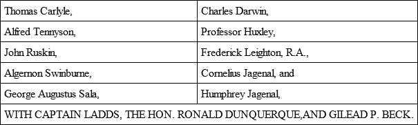 There was some little difficulty in seating the guests, because they all showed a bashful reluctance to sitting near their host, and crowded together to the lower end. At last, however, they were settled down. Mr. Carlyle, who, with a modesty worthy of his great name, seized the lowest chair of all – on the left of Jack Dunquerque, who was to occupy the end of the table – was promptly dragged out and forcibly led to the right of the host. Facing him was Alfred Tennyson. The Twins, one on each side, came next. Mr. Sala faced John Ruskin. The others disposed themselves as they pleased.