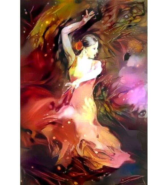 Чем ближе Шарик подлетал к земле, тем чётче видел, что на мощёной камнем танцевальной площадке городского пляжа горит вовсе не костёр – это девочка лет двенадцати, танцевала на ней «фламенко» – огневой танец испанцев. Её красное атласное платье напоминало бушующее пламя. Множество оборок и рюшей, расшитых красно-розовым бисером, едва успевали за движениями танцовщицы. Они кипели, взрываясь переливами света, устремлялись вверх, падали на землю всполохами ярких угольков, вновь взмывали вверх хороводом факелов…