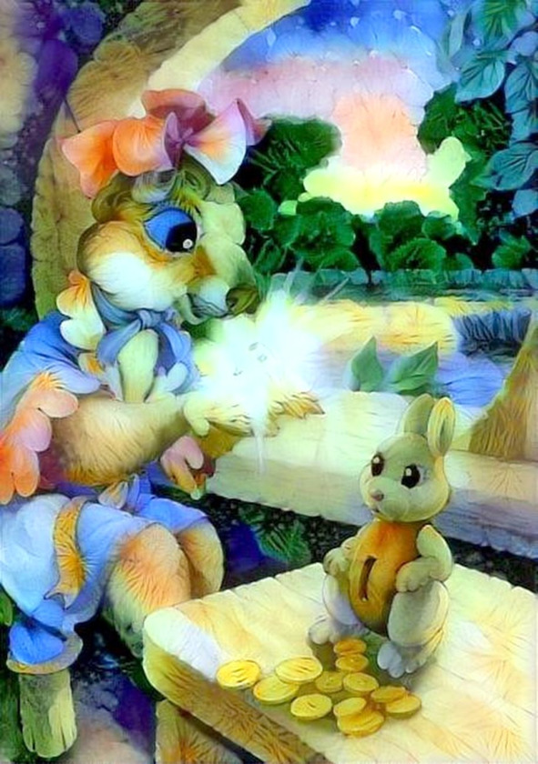 Маруся вынула свою заветную копилку – глиняного зайца. В эту копилку она складывала заработанные денежки. Монетки, звякая друг о друга, вылетали из толстого животика зайца-копилки. Сусличка с сожалением посмотрела на образовавшуюся кучку, вздохнула.