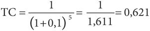 (стоимость 1 долл., полученного через 5 лет, сегодня равна 0,621 долл.).