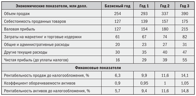 Как могла бы повлиять та или иная стратегия на сохранение доли рынка? Для удержания 10 % доли на растущем биотехнологическом рынке компании стоит активнее инвестировать в маркетинг, исследования и разработку продуктов на уровне соответствия рыночному спросу и затратам конкурентов. При адекватном уровне инвестиций для сохранения 10 % доли рынка у компании появились бы шансы достичь результатов, представленных в табл. 2.3.