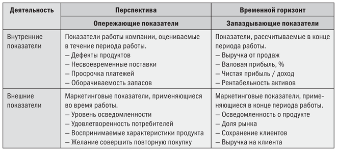 Таблица 2.4. Сравнение внутренних/внешних и опережающих/запаздывающих показателей