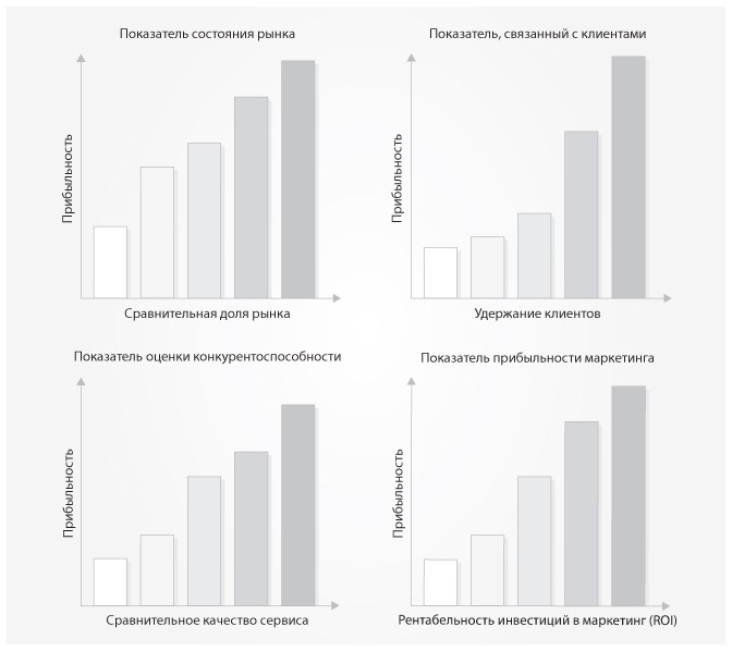 Рис. 2.4. Четыре избранных маркетинговых показателя и их связь с прибылью