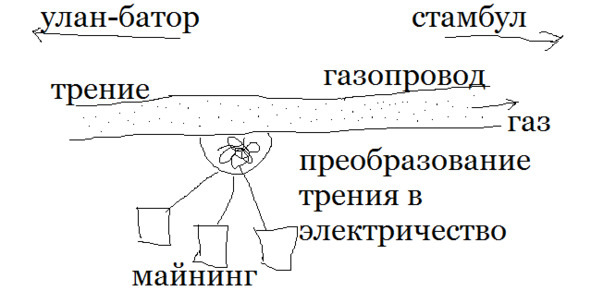 – Как это у вас происходило? Так? Наш стартап является уникальным трейдером на рынке криптовалютного майнинга и блокчейн-фарминга. Мы имеем официальное соглашение с газопроводом Улан-Батор – Стамбул, на котором мы формируем свои майнинговые дата-центры. Представьте, газ движется по трубе, создает трение, трение превращается в тепловую энергию, она в электричество, а электричество, в свою очередь, используется для майнинга крипты. Десять тысяч километров майнинга. Представляете, сколько биткоинов и других криптовалют попроще можно нафармить за это время с этим электричеством? Не хотите вкладываться в сам бизнес? Хорошо, купите у нас биткоины по тридцать тысяч за штуку, завтра будет дороже. Раза в два.