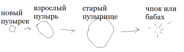 – Почему лопнул пузырь? Одна теория конспирологичнее другой. Я вот вообще без понятия и вряд ли когда-нибудь узнаю правду. Тем более, старенький я уже… Но если верить физике, чем больше воздуха в пузыре, тем больше его объем, тем больше площадь его поверхности. При постоянной массе жидкости, которая удерживает воздух внутри, увеличение площади приводит к чему? К уменьшению толщины пленки из жидкости. Энергии в слое поверхностного натяжения не хватает для сдерживания молекулярной связи… Или как-то так. А потом чпок. Ну или ба-бах.