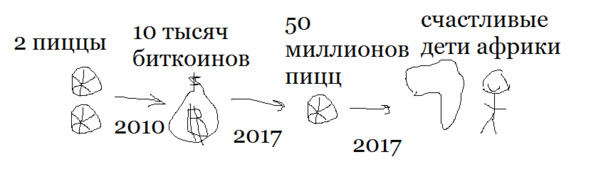– Перепись наркоманов объявляю завершенной. Хе-хе. За биткоины на заре интернета – да, в принципе, и сейчас – можно было купить украденные данные или запрещенную порнографию, заказать хакнуть или убить кого-нибудь. Я хорошо знаю, мне это однажды в каком-то в баре рассказывал какой-то мужчина. А он хоть и пьяный был, выглядел вполне солидно, ему лгать и лукавить было незачем. Биткоин вырос и стал большим – если первая покупка была в десять тысяч монет за две пиццы, то со временем за два биткоина можно было купить десять тысяч пицц, а потом и еще больше. Вы только представьте, продавец тех двух пицц спустя несколько лет смог бы купить за вырученные монеты пятьдесят миллионов пицц. Прокормить каждого голодающего ребенка Африки пару дней. Хотя, конечно же, те самые биткоины были спущены на наркотики или что похуже. А лукавый луковый25 даркнет остался на своем месте.
