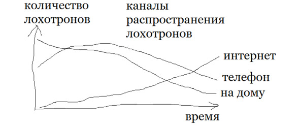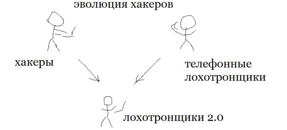 – Хакеры девяностых и нулевых были достаточно хорошо подкованными. Фишинг – выманивание логинов и паролей обманом. Кардинг – использование украденных реквизитов карт для платежей. DDoS – атака с целью вывести сервис из строя. Ух, все это требовало, да и сейчас требует, не только определенных личностных качеств, но и некоторых знаний. Там и «кодекс хакера», и очень высокая планка входа еще с восьмидесятых. А что делать тем, у кого личностные качества соответствуют, а вот со знаниями тяжело? Правильно, лохотронить тех, у кого все еще хуже. Это можно называть «социальная инженерия», но лохотроном от этого это быть не перестает. Страшно представить, сколько продающих лендингов, сколько презентаций на ютубе, сколько сетевого сетевого маркетинга. В смысле сетевого маркетинга средствами глобальной сети. Вас обучат, как инвестировать. Как заработать. Ну, не вас, наверное, а вашу маму или дедушку. Пожилой человек, которого научили пользоваться браузером, вотсапом и скайпом – прекрасная мишень. Если рассматривать с точки зрения эволюции, то к этим кибертеррористам так же близки обычные лохотронщики, как и хакеры.