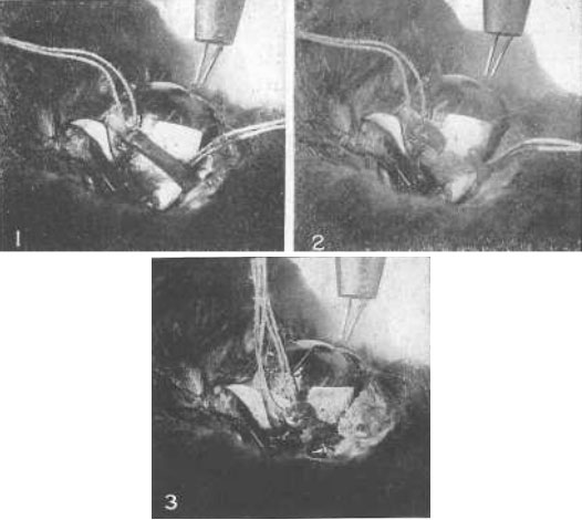Рис. 13. Демонстрация на примере глаза кролика того, что нижняя косая мышца является существенным фактором в процессе аккомодации