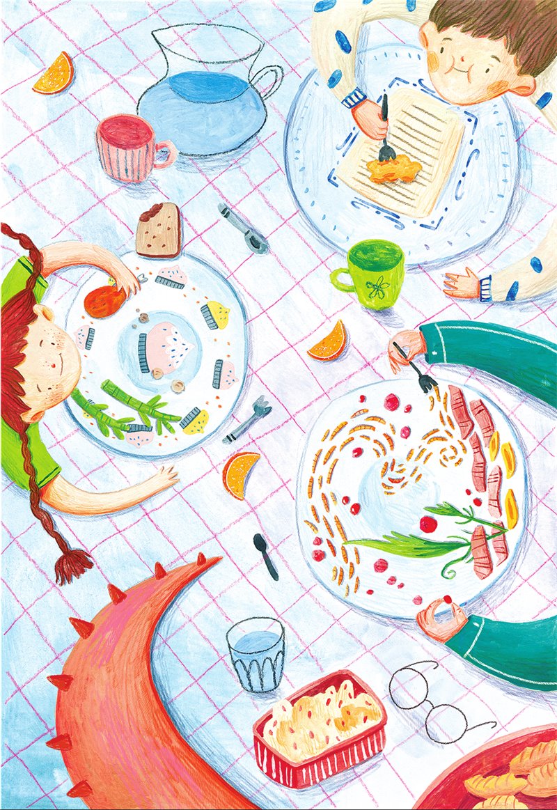 У Кили на посуде нарисована еда. Сестрёнка с ума сходит по готовке, поэтому даже на пустых тарелках у неё должно быть что-нибудь съедобное. У нашего маленького кулинара целый набор посуды с изображением разных блюд: супов, тортиков, салатов и даже всякой экзотики, типа жареных кузнечиков.