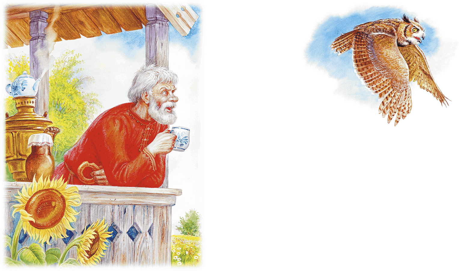 Нечем стало Старику чай белить, – пошёл Старик Сове кланяться: