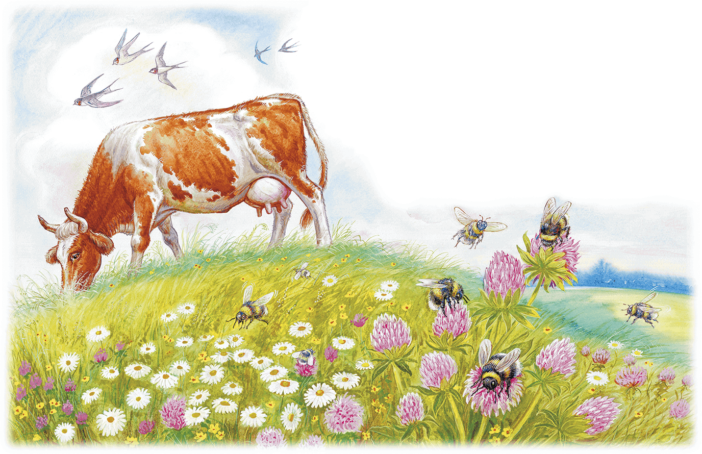 Шмели загудели над лугом, принялись с цветка на цветок летать.