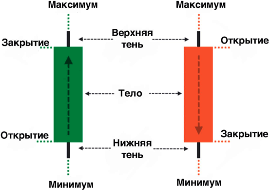 Тело свечи – это пространство между открытием и закрытием свечи.