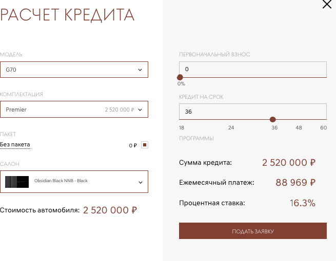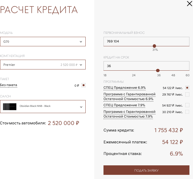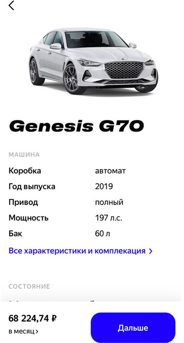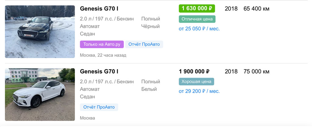 В качестве расчетов для эксперимента берем Genesis G70 (расчет производили в январе 2021).